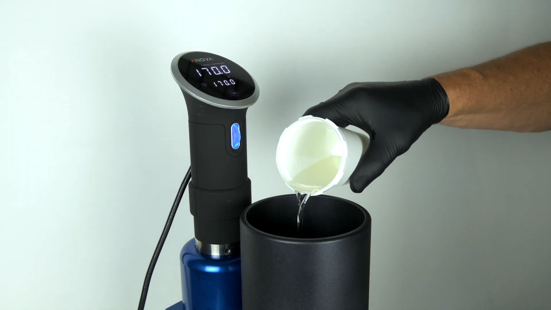 Next, you can adjust the system’s operating temperature by moving the thumb wheel located on the Anova, up and down. During your first set up, we recommend heating your Anova to the maximum 170 degrees Fahrenheit and set the onboard heat switch. This is important because the heated actual oil temperature will be anywhere from twenty to thirty degrees lower than the Anova setting depending on the viscosity of the oil used. You can use a heat gun to determine the actual oil temperature then adjust the Anova as necessary to reach your desired oil temperature.