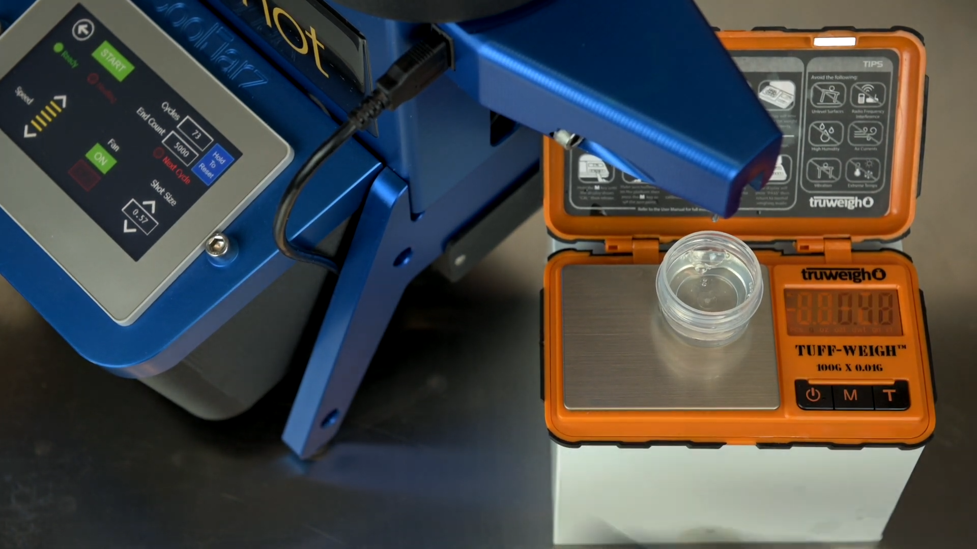 Once you have entered in all of the required information we recommend testing the shot output per tick. Different heats, and oil viscosities will lead to slight differences in shot size. We recommend testing by measuring how much is first dispersed, then adjusting your shot size accordingly. The HotShot™’s shot measurements can be changed by .01 increments and will be memorized for the rest of your batch. Once you have the right amount, you’re ready to start filling carts!